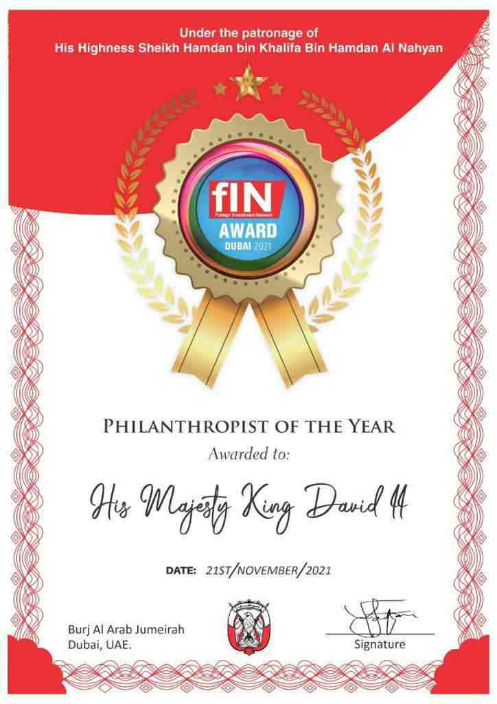 The Vice-Chairman King David Jeremiah won the philanthropist award of the Year in Dubai (UAE) Under the patronage of His Highness Sheikh Hamdan Al Nahyan.