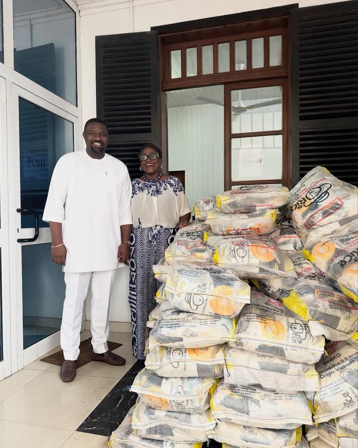 John Dumelo Donates 500 Bags of Rice to Support UG Food Bank Initiative