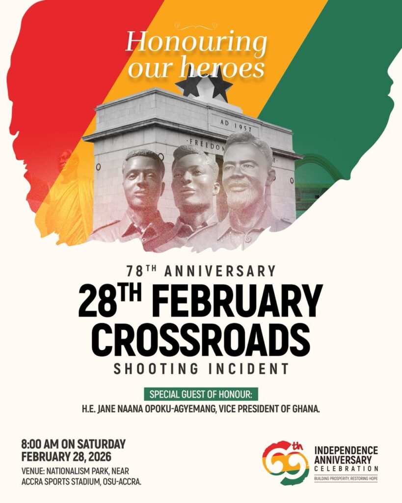 GHANA will on Saturday, February 28, 2026, mark the 78th anniversary of the historic 28th February Crossroads Shooting Incident with a solemn ceremony to honour the nation’s heroes.
